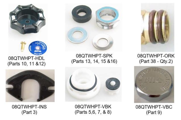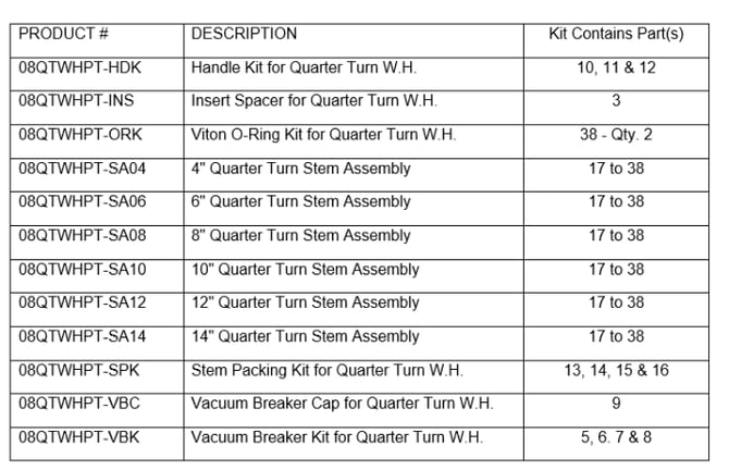 Are replacement parts available for the 08QTWH Series Quarter Turn Wall Hydrants?
