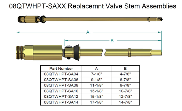 The chart below details the stem length measurement to determine the replacement stem length for your hydrant. You will need to remove the old stem assembly to measure the stem.