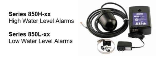 Yes, a 850H High Level Alarm or a 850L Low Level Alarm be used to start or stop a pump, the 850 series alarm enclosures are rated for indoor installation only. A pump can be controlled by using the low voltage auxiliary contacts to send a signal to activate a relay that would open or close the contacts which power the pump.