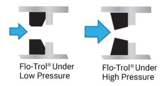 OPERATION: Flo-Trol® automatic flow control vlaves are designed to give constant flow over wide ranges. The vlaves design has no moving parts; rater a self-cleaning flexible orfice that varies in size with applied pressure so that a constant flow rate is maintained.