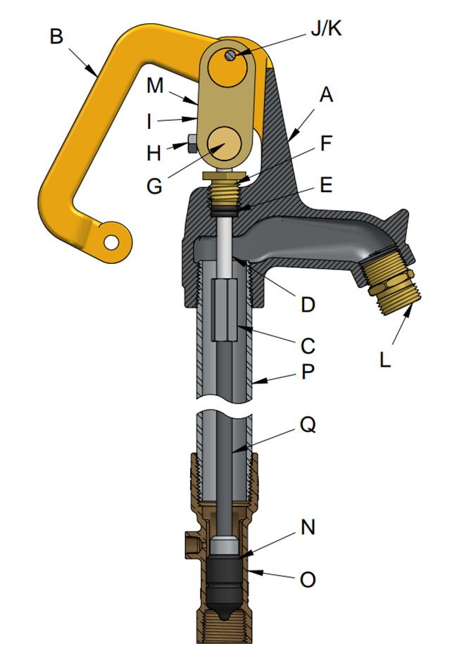 NOTE : Il est extrêmement rare de devoir remplacer le corps de valve ou le tuyau vertical. Si vous remarquez qu’une de ces pièces doit être remplacée, cela veut probablement dire que la prise est en service depuis de nombreuses années. Nous vous suggérons alors de remplacer celle-ci au complet. Dans le cas où les conditions de l’eau ou du sol accéléreraient la corrosion d’un tuyau vertical en acier galvanisé ou d’une tige de raccordement en acier zingué (série YHBR), vous devriez installer une prise d’eau de la série YHSS pour augmenter la durée de vie de celle-ci.