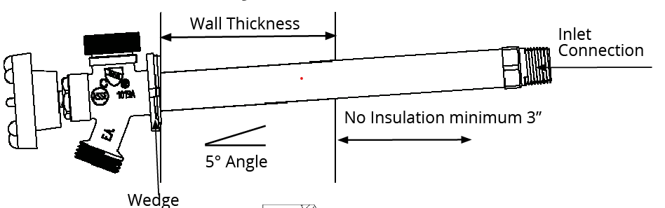 Before getting started, it is extremely important to make sure you have an appropriate length of wall hydrant for your wall thickness. The inlet connection MUST extend through the wall and any insulation so that the connection is inside the warm space at a position that is easily accessible to make the water line connection. Uneven wall surfaces may require an additional wedge to ensure a sufficient angle.