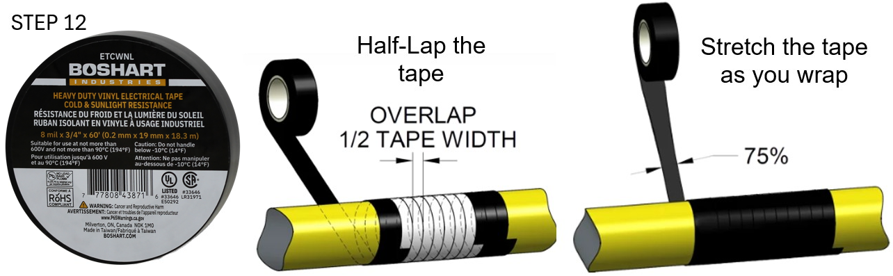 To provide additional abrasion protection to the splice connections, the application of multiple layers of electrical tape around the entire length of the splices can be highly effective.