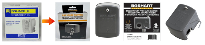 The chart below provides the equivalent Boshart PS02 & PS02MD Series pressure switch to a list of common Square D Class 9013 pressure switches.