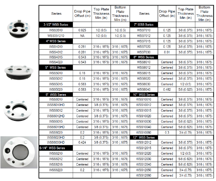 From time to time there are questions regarding the drop pipe offset on some of the WSS series, steel plate well seal. The concern being that the offset will cause issues with the pump installation down the well. In theory the concern appears to have merit, however in reality it is of NO concern.